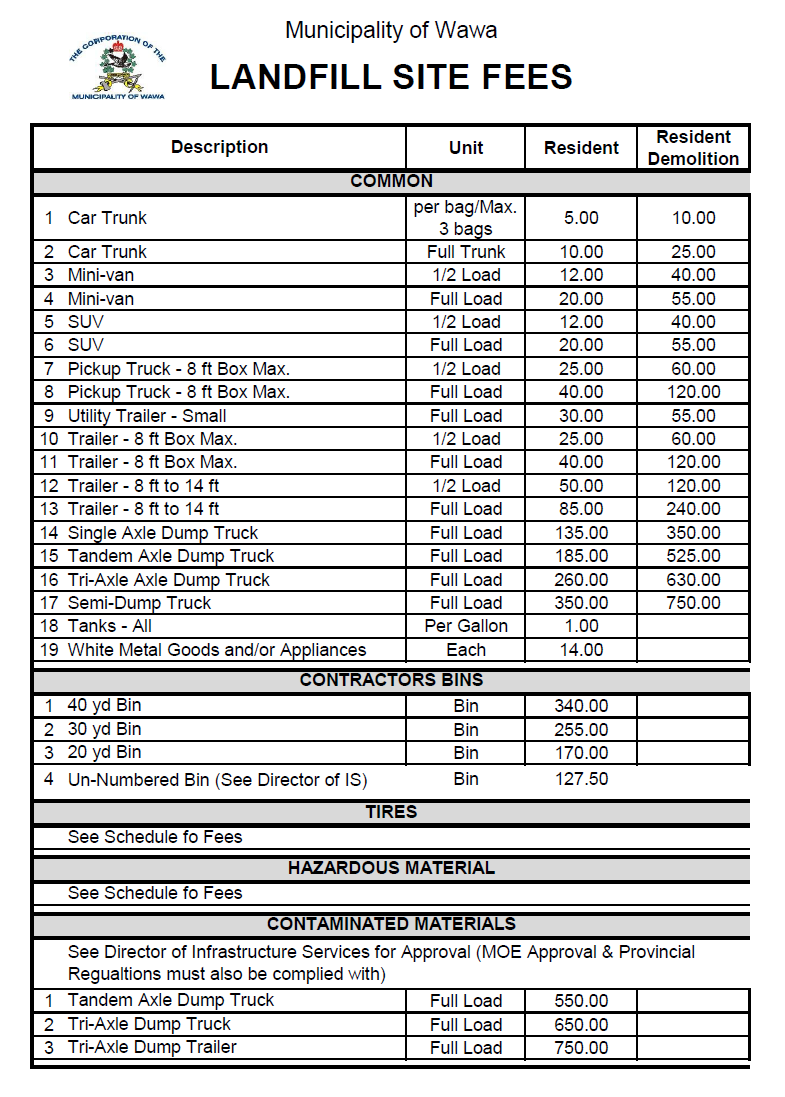 The Municipality of Wawa landfill site is located at 161 High Falls road and open to the public during regular hours.