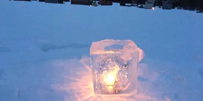 Ice Candles are lit in celebration and memory of loved ones. Anyone can buy an ice candle and either lay it on a loved one's plot or have volunteers place the candle for you.